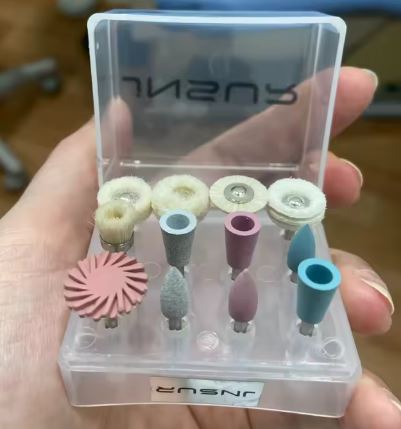 Il comprend différentes pointes et matériaux qui aident au fini, au lissage et à la brillance finale des restaurations et des surfaces dentaires.