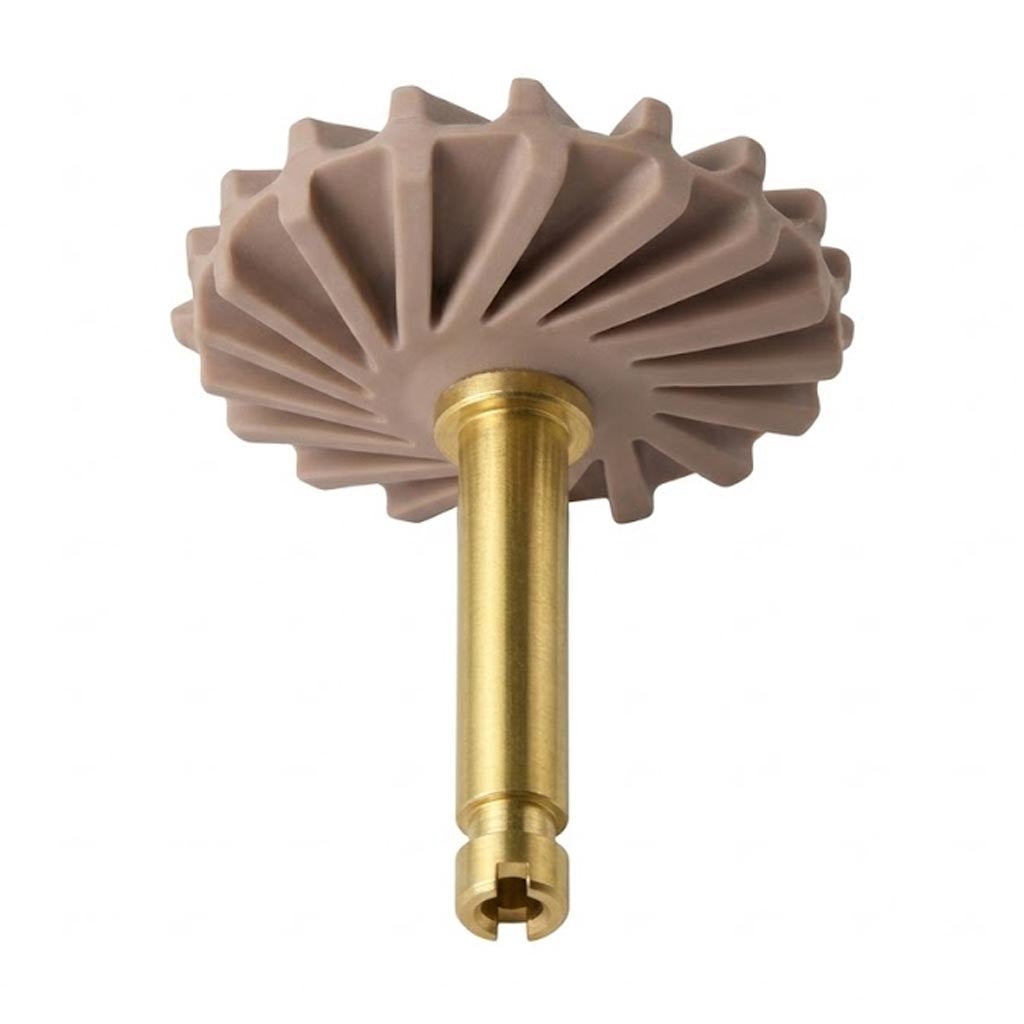 Les embouts en silicone en forme de coupe sont excellents pour polir les surfaces occlusales et les concavités. Les disques en feutre fonctionnent à merveille sur le cobalt-chrome et l’or.